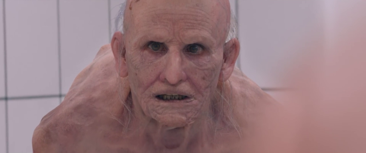 J’ai vu beaucoup de gens qui s’amusaient à compter les milliers de “clin d’œil” à d’autres films, donc je ne vais pas faire une liste exhaustive ici. Mais j’ai été de étonné de voir qu’il en manque toujours une, totalement gratuite et qui se connecte à rien, celle de Massacre à tronçonneuse, dans cette séquence sombre qui fait très rétro/slasher. On y aperçoit Elisabeth qui a commencé sa métamorphose monstrueuse en train de transformer son appartement en atelier de cuisine immonde. Elle prépare des plats pour rendre Sue malade, dans l’obscurité de sa cuisine, et tout un coup elle brandit la machine un batteur à oeufs en l’air, on ne distingue que sa silhouette avec ses cheveux blancs hirsutes, gros zoom vintage sur elle avec le bruit d’une tronçonneuse.
